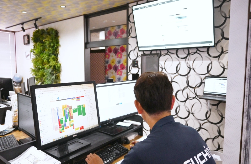 自社オリジナルの管理システムを活用し、工程管理の不備や漏れ、注文材料の発注ミス、コミュニケーションの不安を解消します。